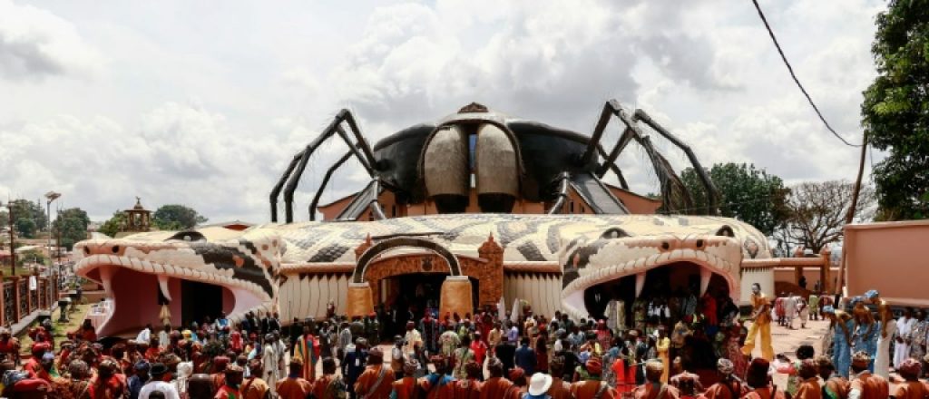 Pour pénétrer dans le musée des Rois Bamouns, dans l’ouest du Cameroun, on passe sous les crochets des gueules béantes d’un gigantesque serpent à deux têtes, clou d’un imposant édifice en forme des armoiries de l’un des plus vieux royaumes d’Afrique subsaharienne, inauguré en grande pompe ce weekend.