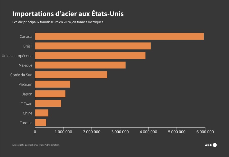 Le président américain a signé lundi soir deux décrets portant sur ces droits de douane, utilisant de manière désormais concrète le principal levier de sa politique économique contre ses partenaires commerciaux. Le Canada en est la première victime, étant le principal fournisseur d’acier et d’aluminium des Etats-Unis.